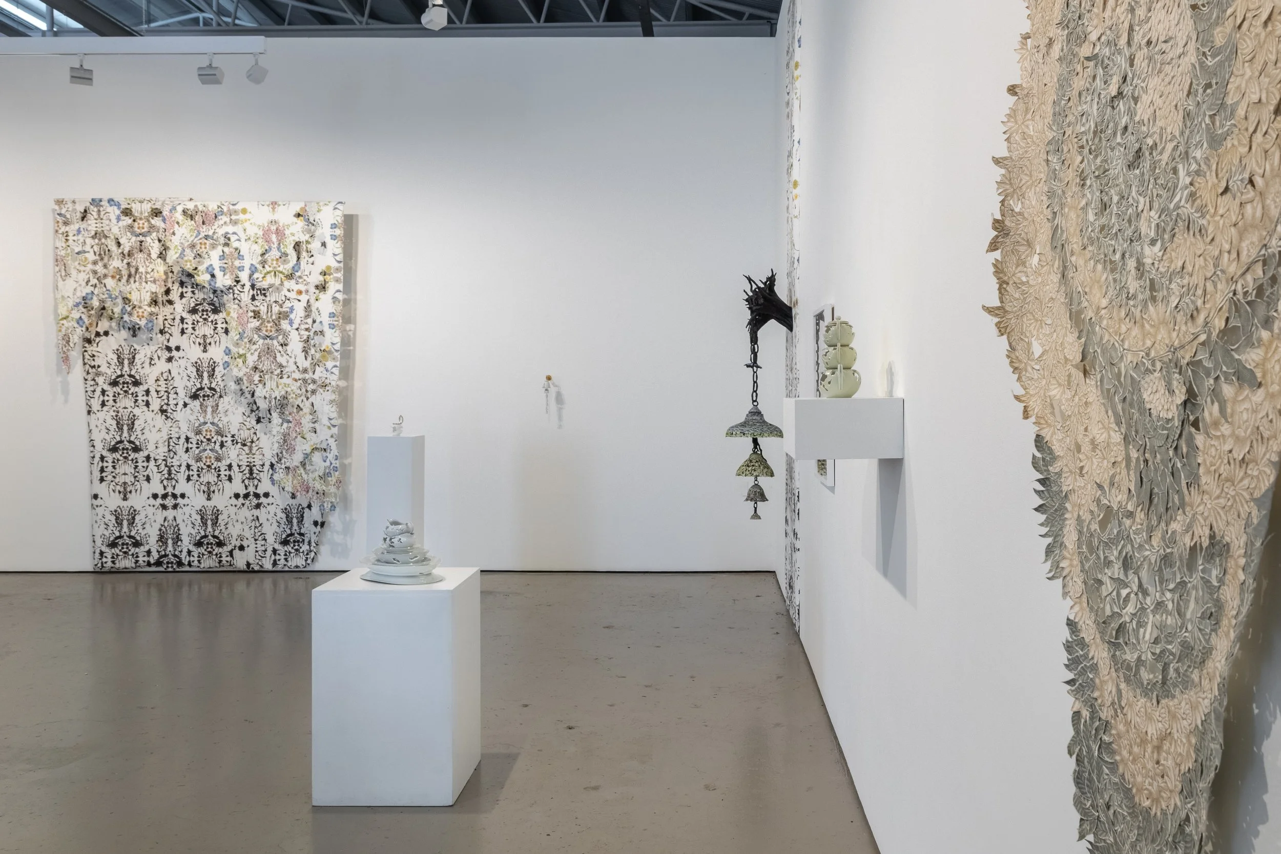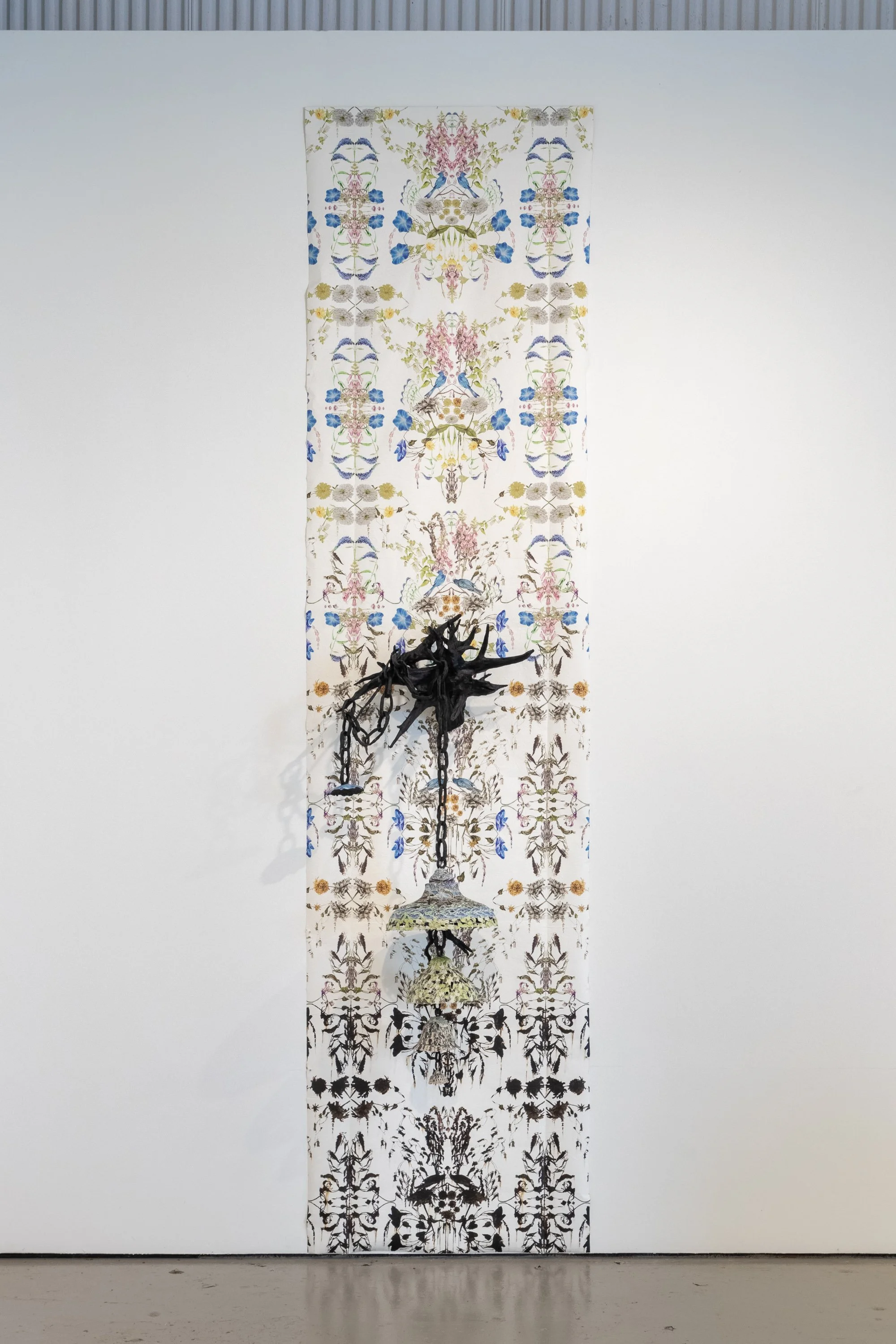 "Pulling from a wide array of source materials, Alexander recontextualizes objects traditionally associated with domesticity such as wallpaper, upholstered furniture, and porcelain ware, probing at the societal, historical, and personal meanings embedded within. Her meticulously rendered works reveal the many contradictions lurking beneath the surface of lovely, docile appearances.